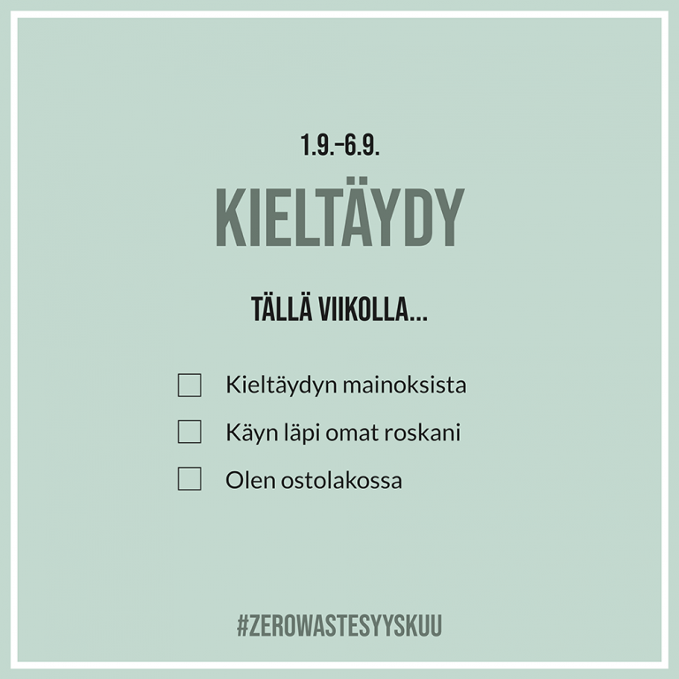 Nyt vietetään Zero Waste -syyskuuta. Teemakuukauden tavoitteena on lisätä tietoisuutta jätteen minimoimisesta ja herättää ihmiset tarkastelemaan kriittisesti arkipäiväisiä kulutusvalintoja.