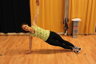 Makaa oikealla kyljellä jalat päällekkäin. Paina oikea käsi alustaan ja työnnä vartalo ylös suoraksi linjaksi. Nosta vasen käsi kohti kattoa. Vedä vasen polvi ja kyynärpää kohti toisiaan koukistaen niitä. Palauta käsi ja jalka suoraksi. Toista 10 kertaa ja tee sama toiselle puolelle.