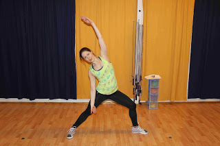 Seiso lantion levyisessä haara-asennossa. Astu oikealla jalalla pitkälle taakse ja koukista molemmat polvet. Ojenna samalla kädet suorina ylös. Ponnista oikea jalka ylös ojentaen se suoraksi, ja taivuta samalla ylävartaloa eteenpäin niin, että olet vaaka-asennossa. Pysy asennossa 3 hengityksen ajan. Palaa alkuasentoon.