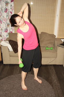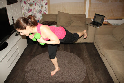 Ai niin.. älkää naurako mun vauva-käsipainoille! Tai naurakaa vaan, mut älkää ottako mallia! Nuo on ollu mulla käytössä YLÄASTEELLA! 😀 Ei oo tullu hankituksi isompia, kun teen niin harvoin kotitreenejä, ja jos teen, niin mulla on hyvä levypaino-tanko-setti, mitä käytän silloin. 🙂