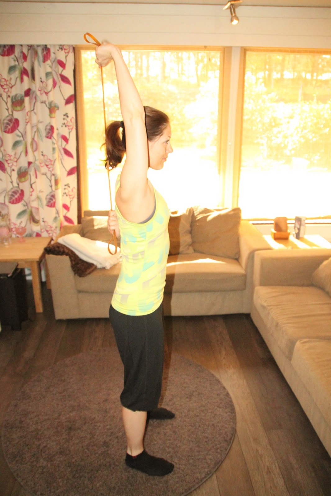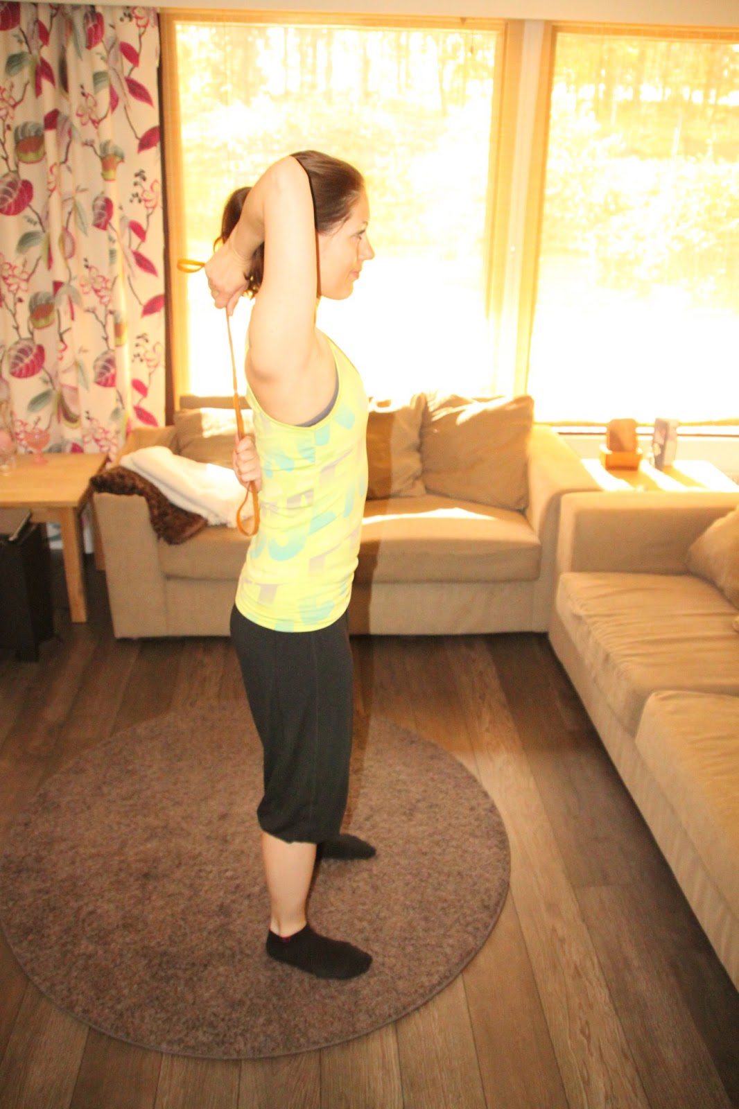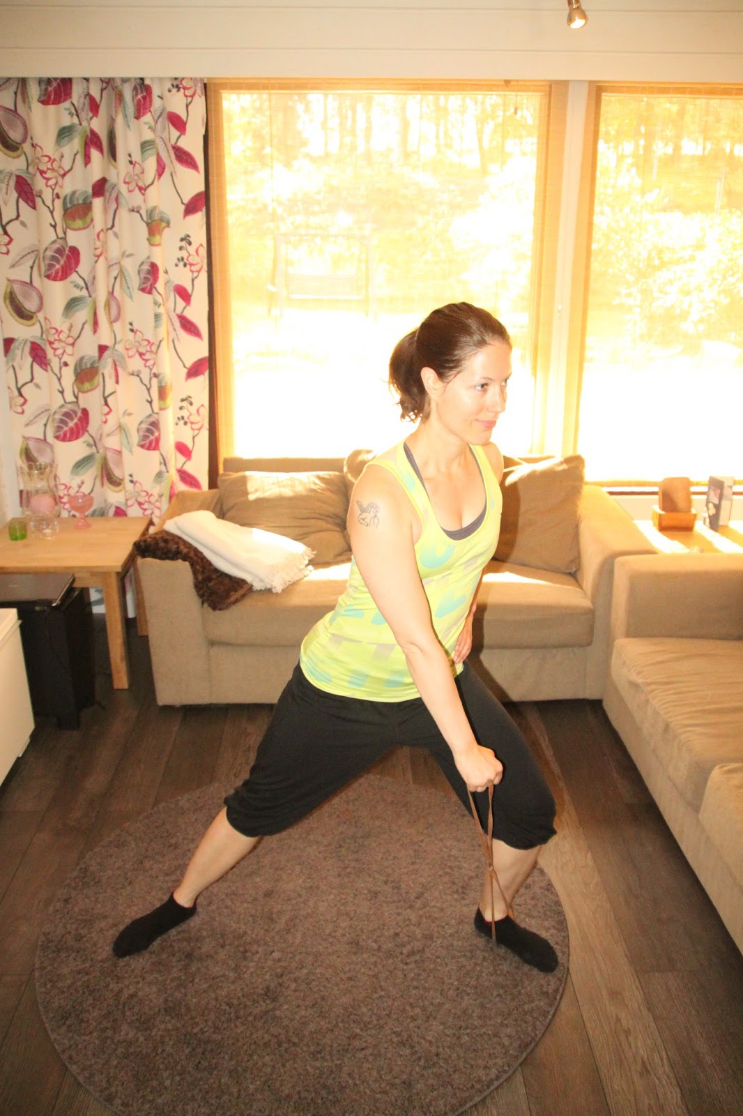 Jos haluat lomareissullakin tehdä pientä jumppaa vastuksen kera, on kuminauha siihen kätevä väline. Se ei paina matkalaukussa, ja tuo vastusta ja vaihtelua omalla kropalla tehtäviin harjoitteisiin. Postasin myös viime kesänä kuminauhajumpan, ja tässä sille jatkoa. 🙂