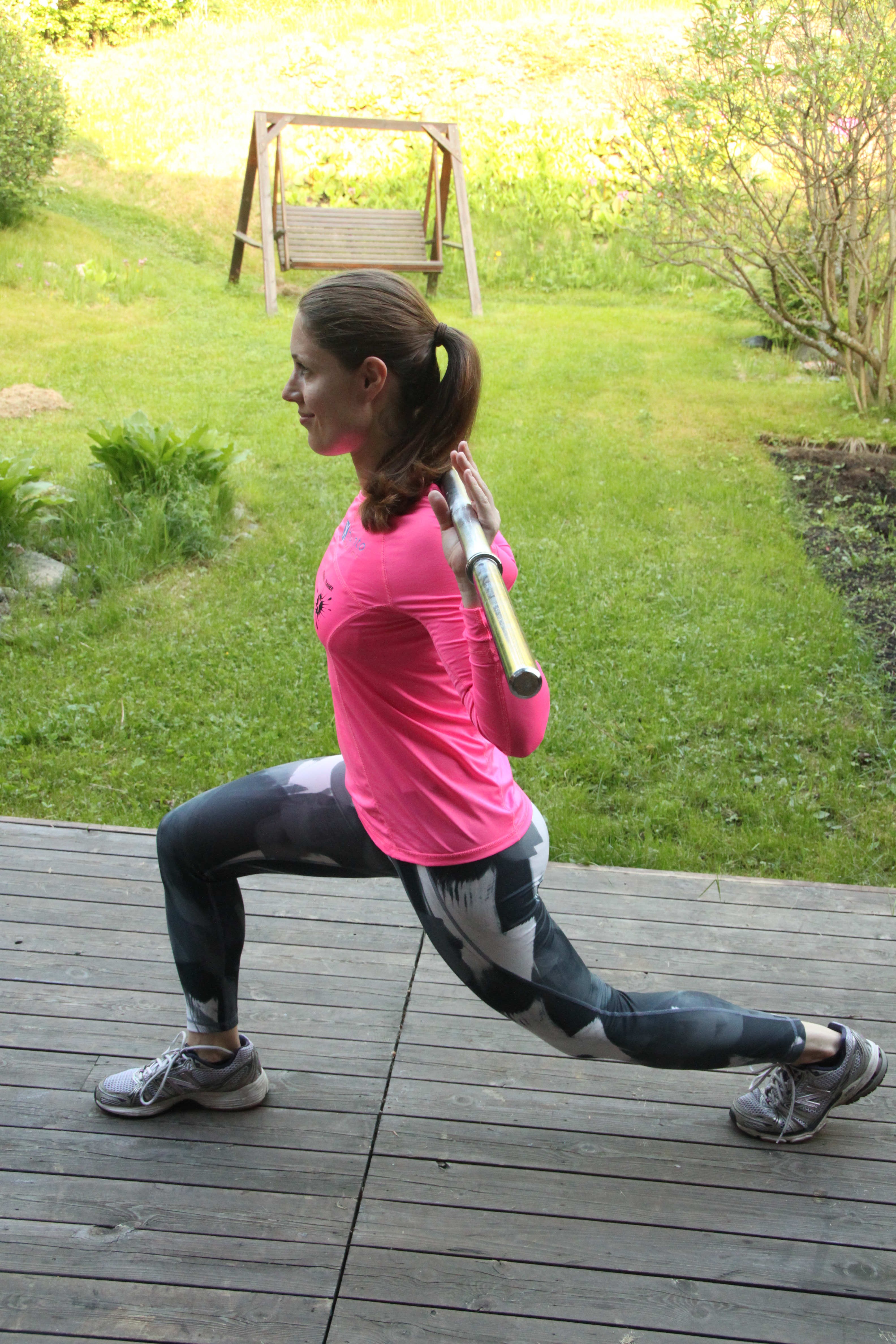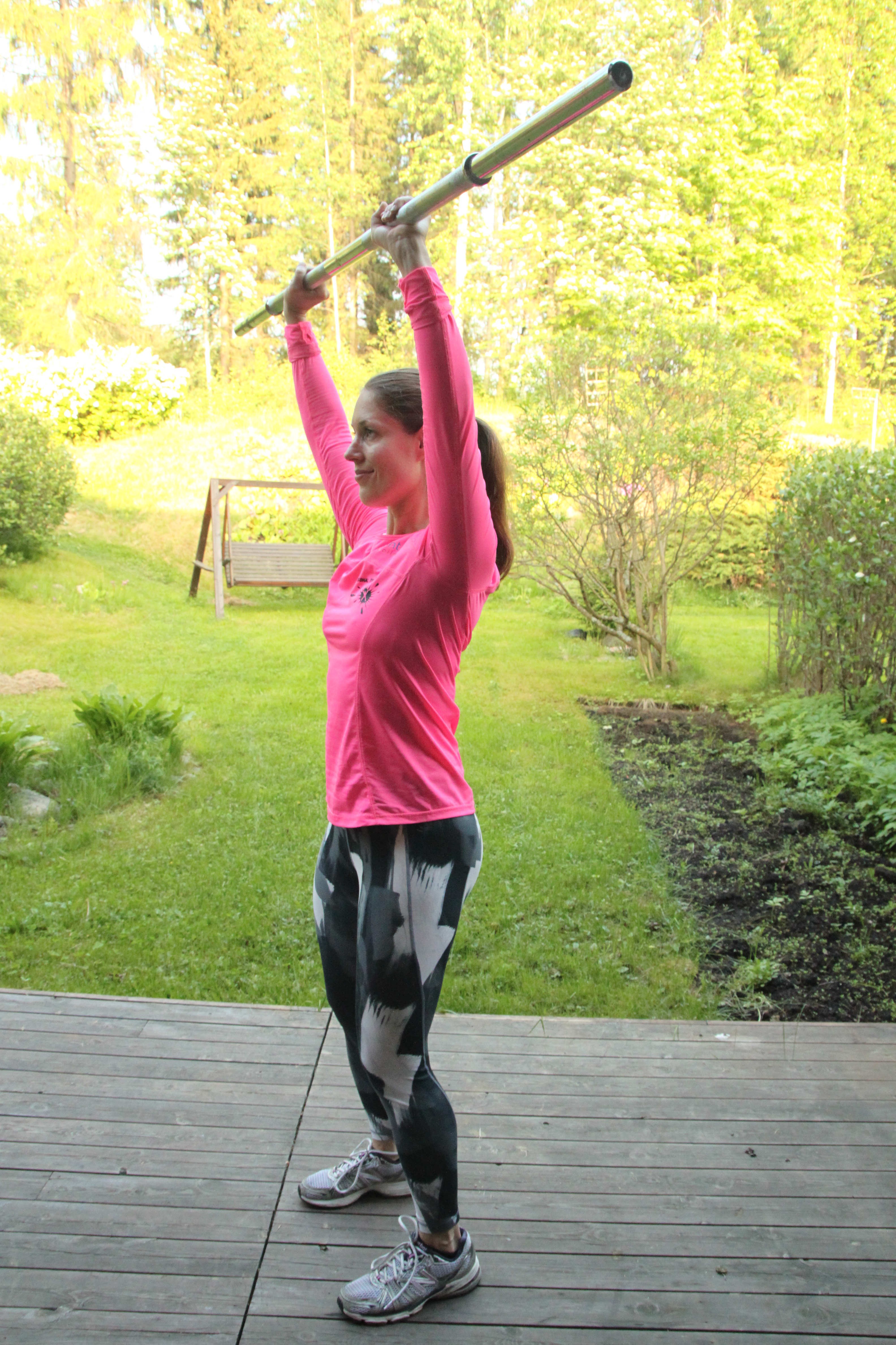 Ei muuta kuin tanko esille, ja terassille jumppaamaan! Itse sain uteliaita katseita naapureilta, mut ei haitannu! Seuraavalla kerralla kutsun mukaan! 😆