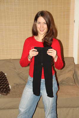7)      Kävin netissä kurkkaamassa, löytäisinkö jotain uutta tietoa treenistä kipeytyviin lihaksiin koskien. No, yksi hauska uutinenpisti silmään. Nimittäin: tiukat trikootkin voivat auttaa lihaskipua! Hih! Itse asiassa tämä olikin mulla jo tiedossa, kun toivoin 2 tai 3 vuotta sitten joululahjaksi kompressioleggingsejä, joiden kerrottiin mm. nopeuttavan palautumista, sekä kiinteyttävän!! Käyttö jäi silloin vähiin, koska legginsejä oli rasittavaa pukea päälle. Ai miks? No, katso alla oleva kuva! 🙂