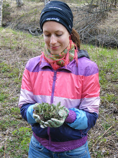 | Minä ja nokkossaalista. Hanskat kaivoin repusta, kun olin ensiksi testannut paljain käsin, että nokkoset olivat todellakin nokkosia.. 😉 |