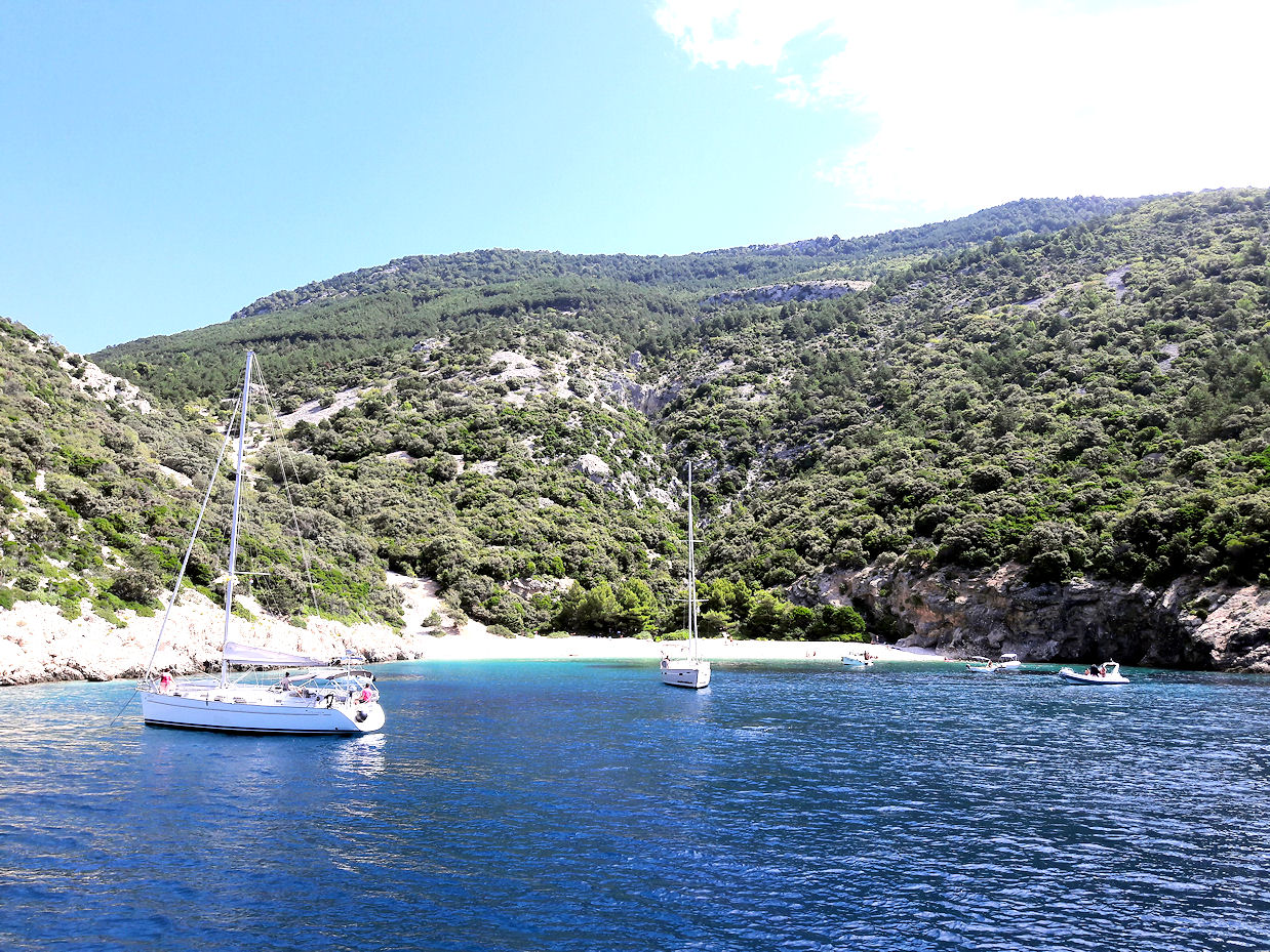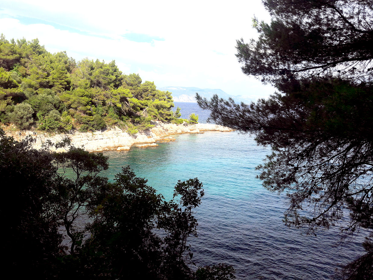 Ensimmäinen pysähdys oli Cresin saaren edustalla upealla luonnonrannalla, jonne ei päässyt kuin vesiteitse. Uimme oppaan perässä pieneen luolaan, joka oli mielenkiintoinen kokemus – en ole koskaan aikaisemmin uinut luolassa. Luolan perälle siinsi valoa, ja se teki sinne hienon sinisen tunnelman. Harmi, ettei minulla ole vedenpitävää kameraa, jolla olisi saanut kuvia.