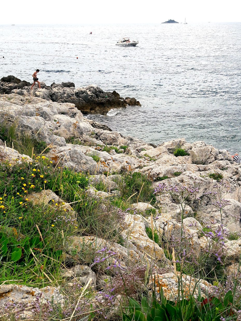 Toki piipahdettiin pariin otteeseen myös uimassa. Rovinjin vanhan kaupungin kupeesta lähtee pitkä rantakatu, jota käveleskellen pääsee laajalle puistoalueelle ja uimarannoille. Myös suoraan vanhasta kaupungista pääsee uimaan kallioilta rappusia pitkin. Rovinj on mukava kaupunki myös rantaelämästä nauttiville.