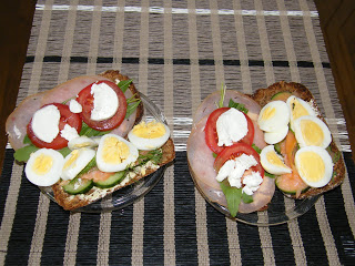 Välipalaksi söimme torilla tuoreita mansikoita ja kirsikoita, ja kevyenä illallisena nautiskelimme kylmäsavulohi- ja kylmäsavukalkkunaleipiä. Tarkistimme, etteivät leivät, eivätkä leikkeleet sisältäneet lisättyä sokeria. Leipien lisukkeina oli myös vuohenjuustoa, rucolaa, tilliä, kananmunaa, tomaattia ja kurkkua.