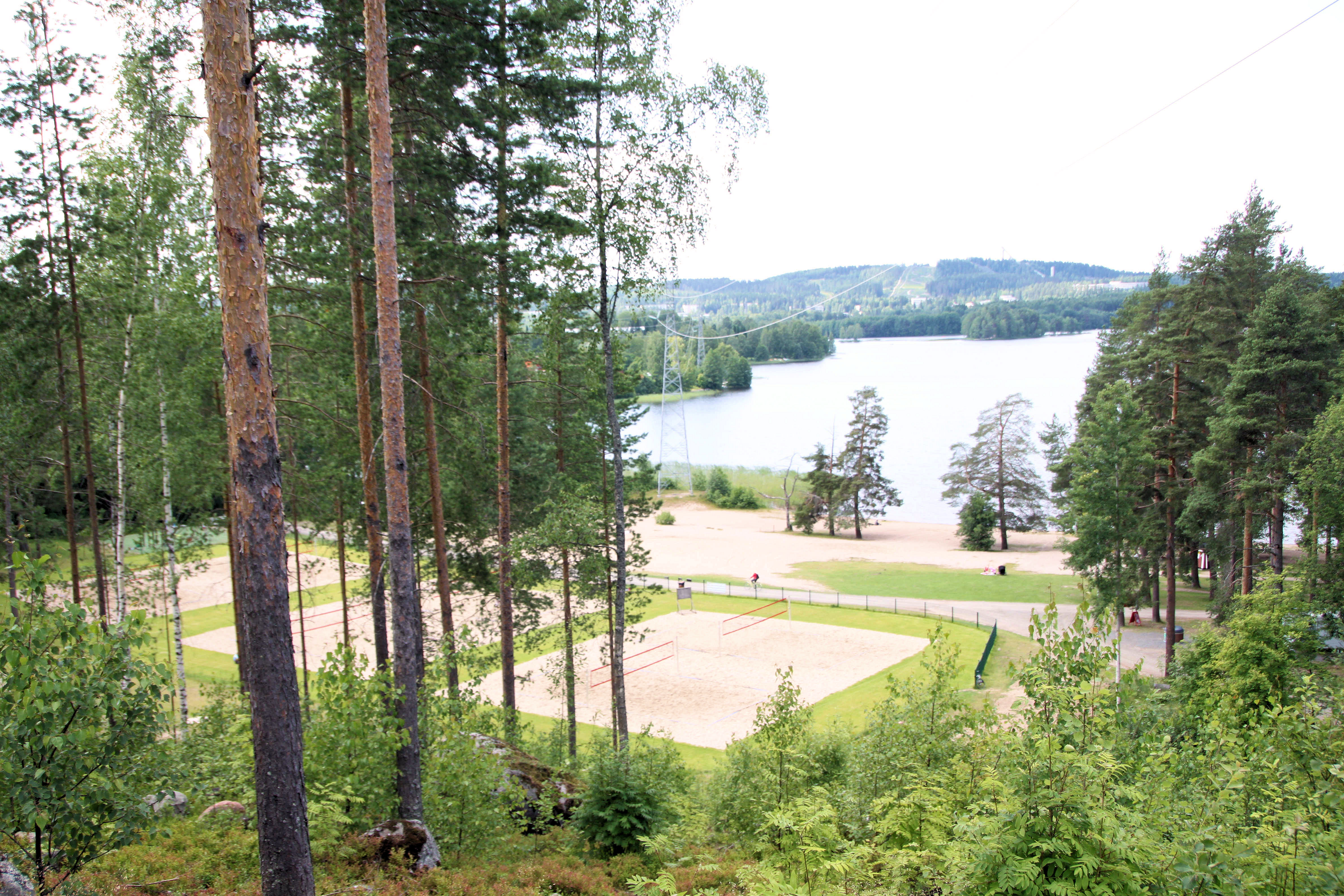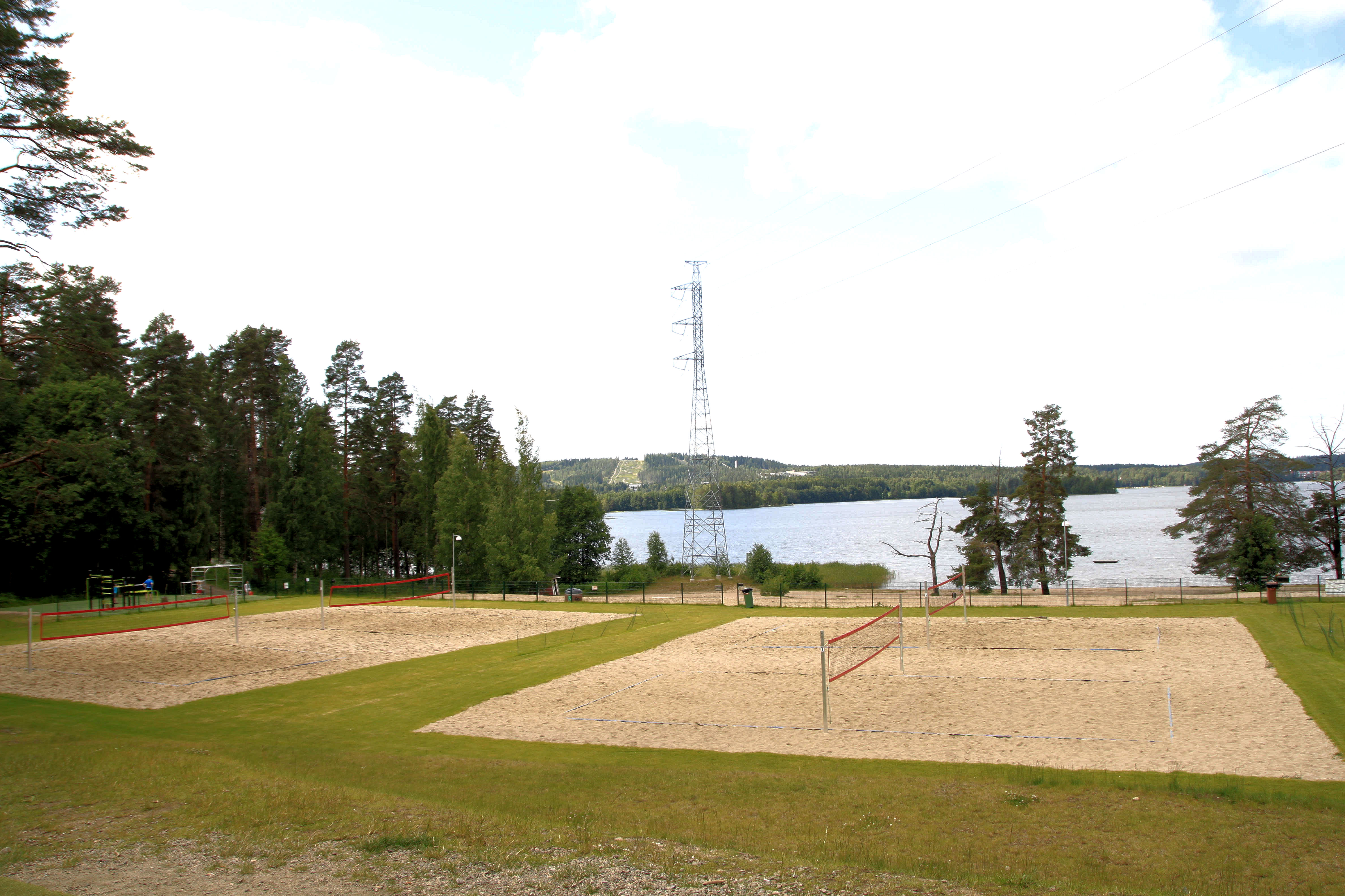 Tuomiojärven frisbeegolfrata lähtee beach volley-kenttien laidalta.