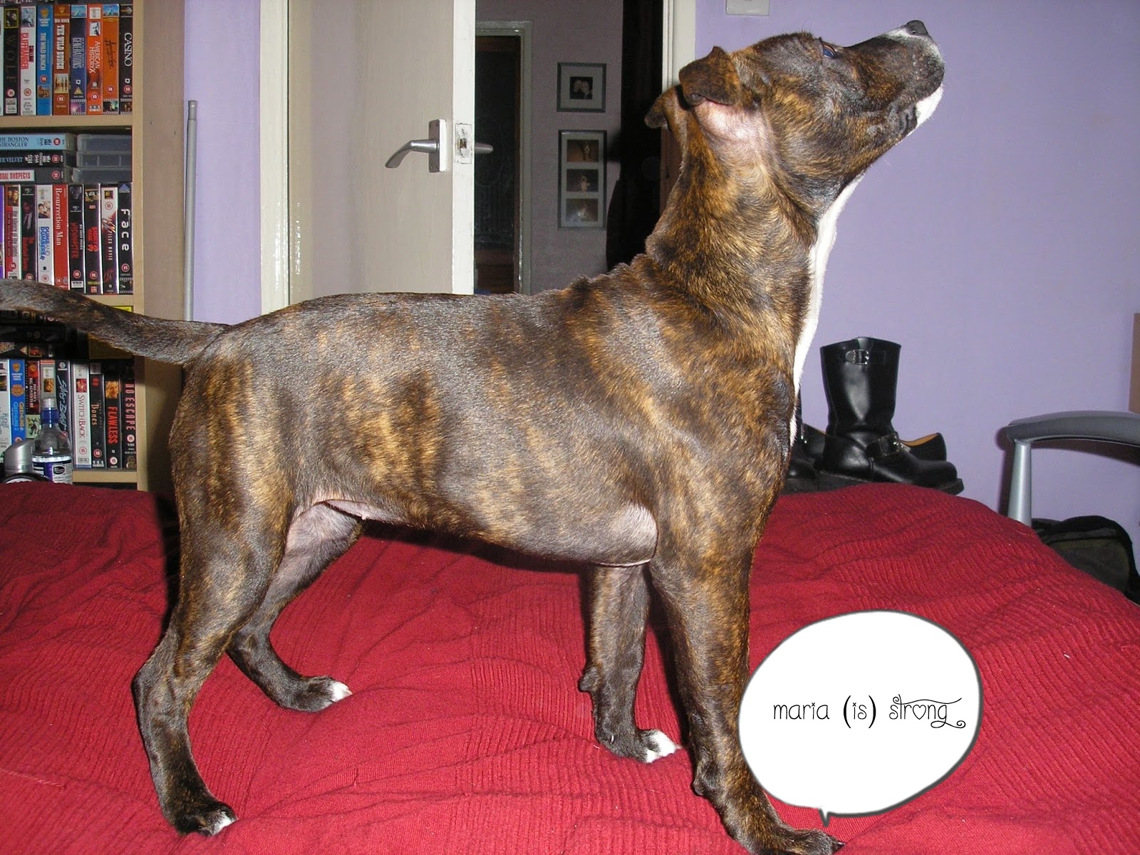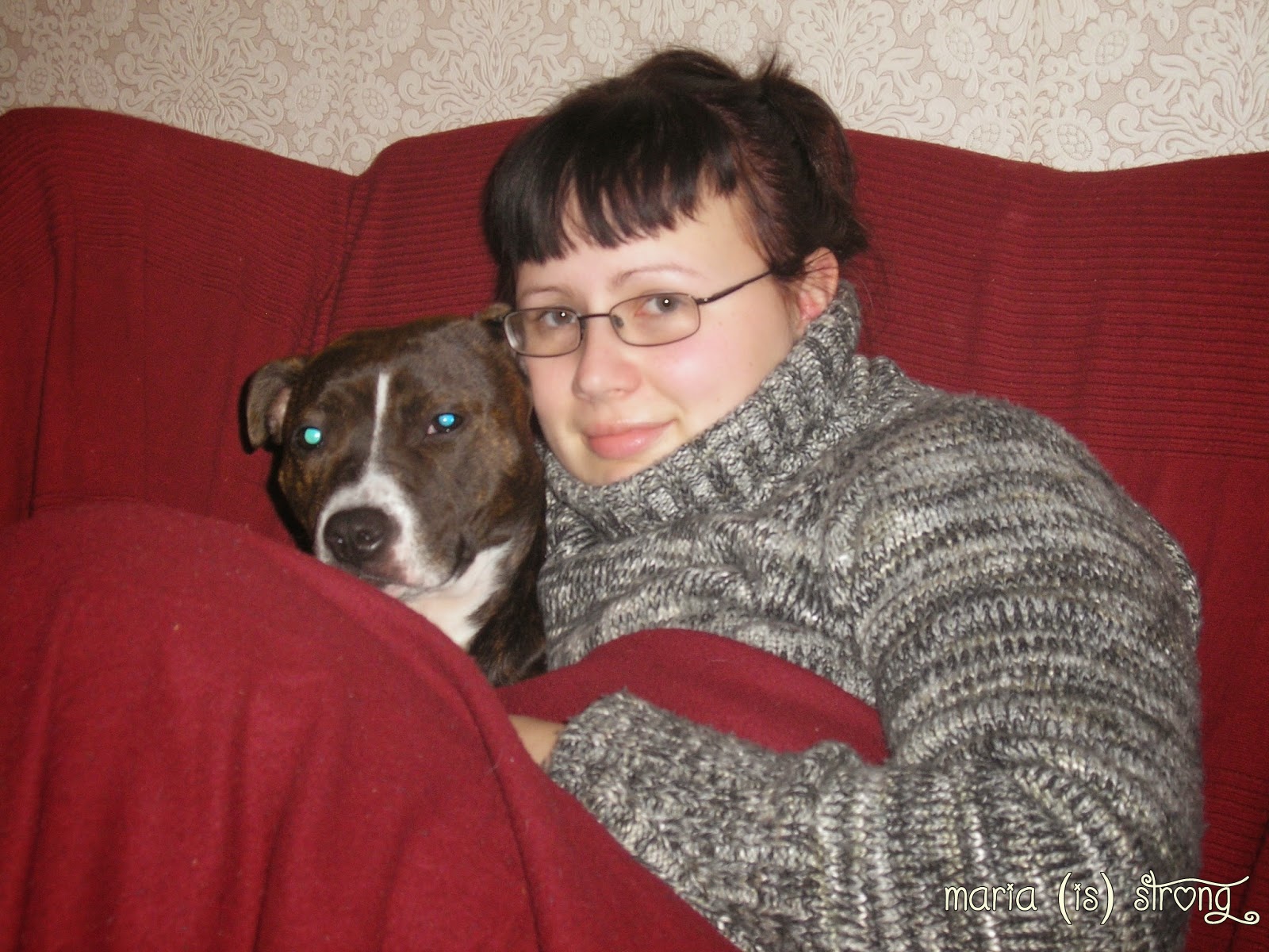 Staffimme kanssa lämmittelemässä viltin alla kylmänä talvipäivänä.