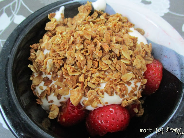 Ensi kerralla kokeilen jauhojen kanssa, jolloin lopputuloksessa pitäisi olla rypäksiä hiutaleita (siis isompia paakkuja). Hyvää tämäkin on mansikoiden ja rahkan kaverina.
