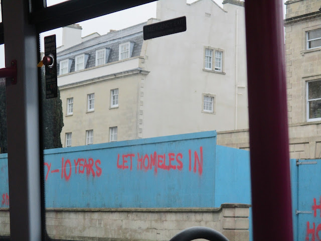 Shelter hyväntekeväisyysjärjestön mukaan Englannissa yksi kahdestasadasta ihmisestä on koditon tai asuu puutteellisissa olosuhteissa. Yksi kahdestasadasta! Bristolissa näky kaupungin keskustassa oli itselle sydäntäriipaisevaa. Olihan niitä kodittomia näkynyt aiemminkin katukuvassa, mutta nyt kauppojen vieressä, porttikongeissa, katosten suojissa oli valtava määrä pahvilaatikko/makuupussi/rinkka- yhdistelmiä. Selvästi jonkun yöpymispaikka ja omaisuus (siksi niistä ei olekaan kuvia). Kaikki kodittomista ei nuku taivasalla, mutta niiden määrä on selvästi omaankin silmään kasvanut.