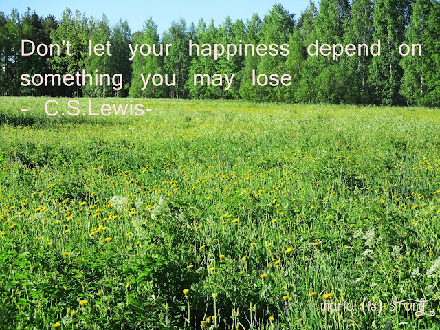 Toisaalta en halua elämääni TAKAISIN ja toisaalta myös on viimeiset puoli vuottakin ollut minun elämääni. Kaikessa kivussa ja vaivassa elämässä on kuitenkin jotain, mitä en haluaisi vaihtaa. En halua takaisin siihen stressitäyteiseen elämään ja siihen harhaluuloon, että kroppa kantaa vanhuusikään saakka. Sairaus näytti rajustikin elämän haavoittuvuuden ja sen, että kaikki fyysinen on katoavaa. Olinhan sen tiennyt ja nähnyt muiden kohdalla, mutta nyt saan olla myös kiitollinen, että olen saanut sen myös kokea.