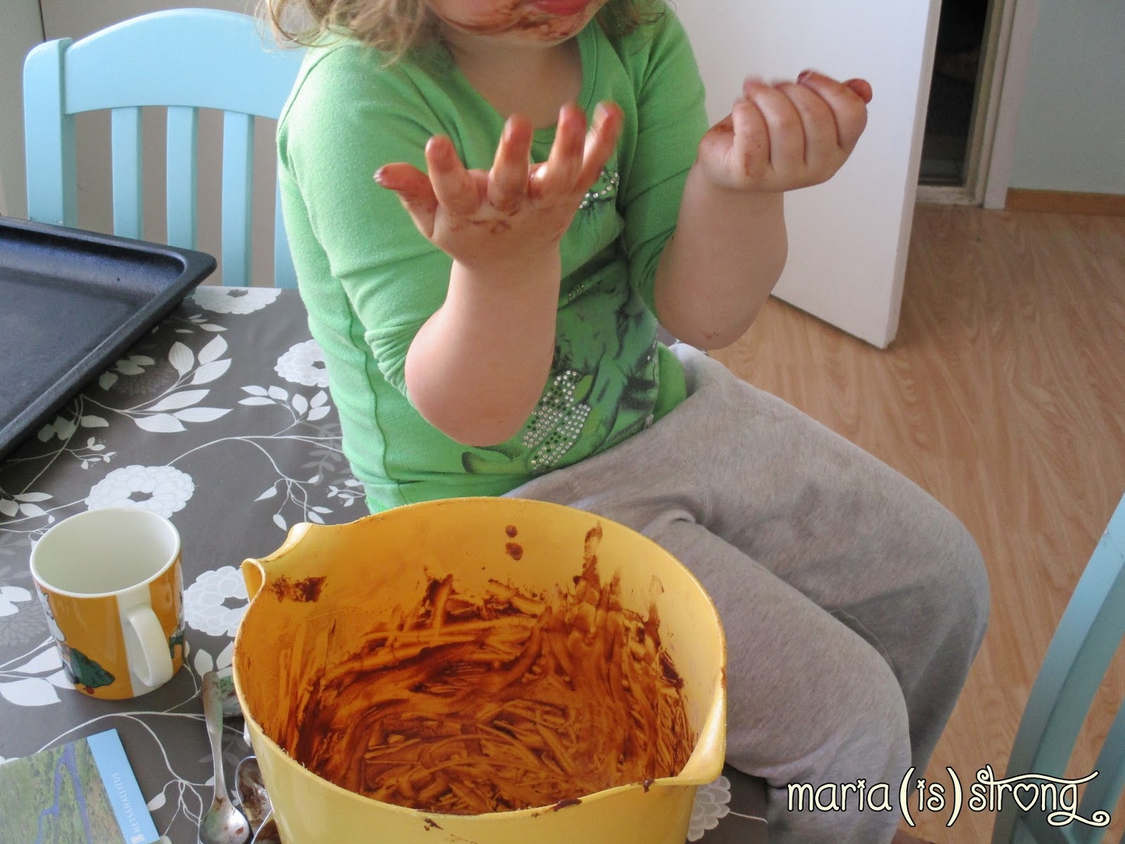 Olin itse tässä vaiheessa etsimässä netistä suklaakuppikakkujen reseptiä, koska kaapissa ollut resepti vaati sulatettua suklaata ja moista ei meiltä löytynyt. Kaikissa resepteissä rasvana oli ruokaöljy ja olin ehtinyt pilkkoa voita valmiiksi. Reseptit olivat myös pitkien alustustarinoiden jälkeen ja niissäkös alkoi mennä hermot. Miten voi olla mahdoton yhtälö löytää resepti, johon tulee voita ja kaakaojauhetta. Hermot kiristyy. Lapset alkavat jo kinastella, kuka voi seistä tuolilla. Kohta räjähtää. Ärräpäät alkavat päästä jo suusta. Nakkaan puhelimen pöydälle, niin että se irtoaa kotelostaan – hiton netti on hidas. Ärräpäitä lentää entisestään. Lapsilla on itku lähellä. Koira järsii jälleen kerran eteisen maton kulmaa. Suustani pääsee jotain alkukantaista karjuntaa muistuttava ääni.