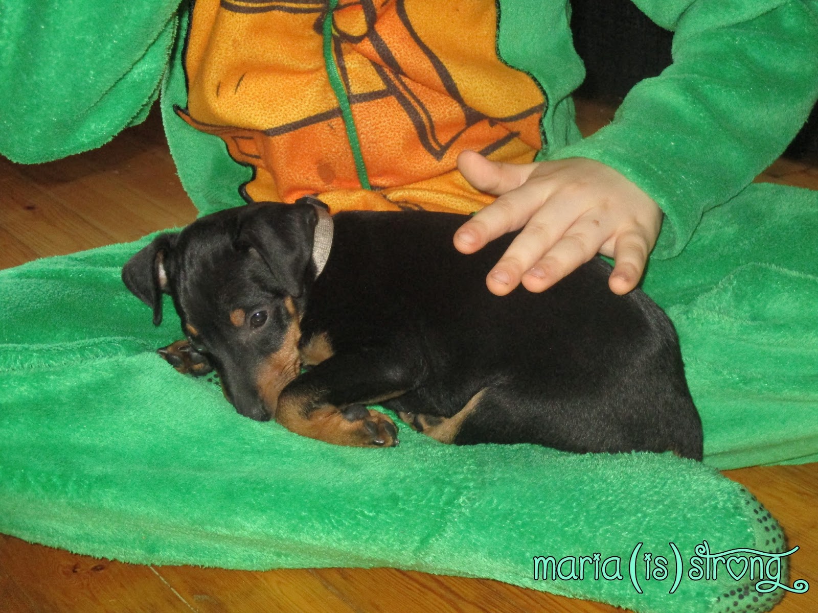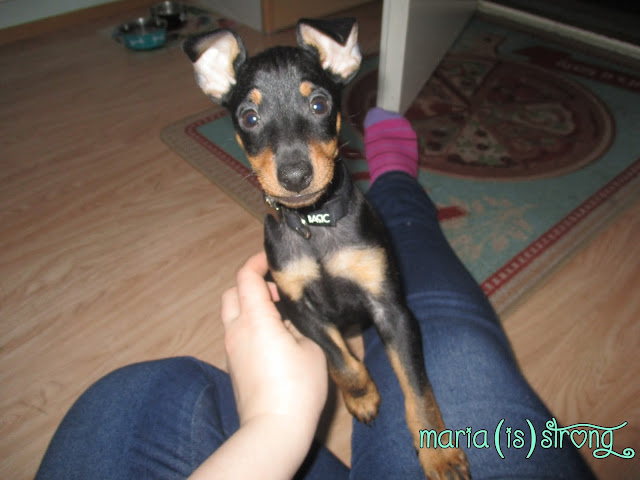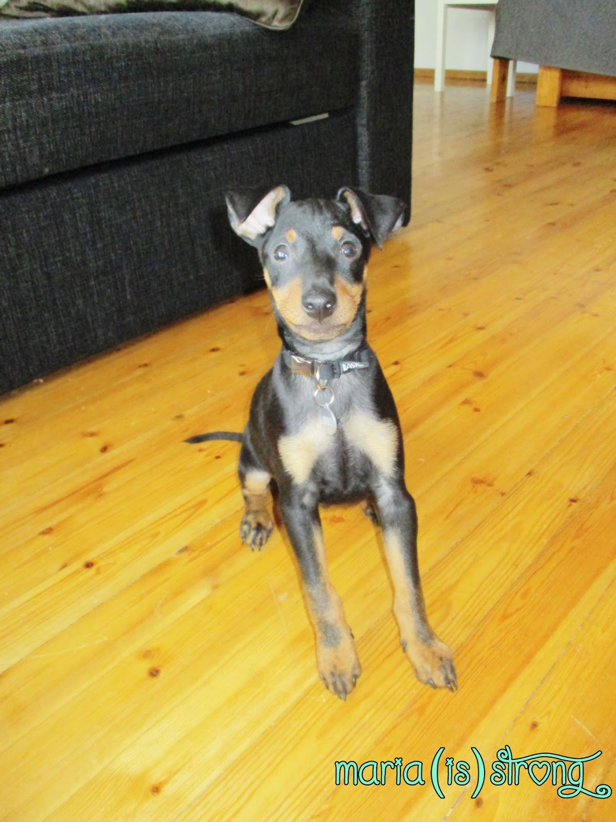 Meillä on nyt neljä viikkoa asunut vilkas englanninkääpiöterrieripoika. Pentuaika tulee aina hieman järkytyksenä, kuinka aikaa vievää se on. Pentua pitää vahtia koko ajan ja juuri kun sain kuopuksen nukkumaan yöt läpi, joutuu nyt seisomaan aamu kolmelta takapihalla pissattamassa karvaturria.