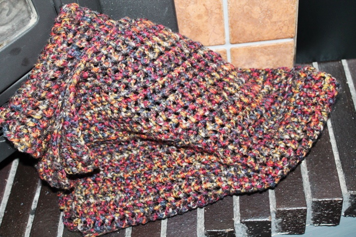 Olen saanut loppuun viimeisimman virkkaustyön, josta ei tullut yhtään sitä, mitä ajattelin. Tyylikkäästä epäsymmetrisestä ponchosta tuli pitkä hartiahuivi, mutta eiköhän silläkin pysyt vilut loitolla.