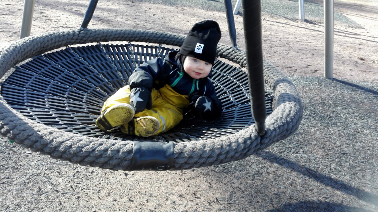 Liikkuminen on selkeästi se, mihin tämä pieni taapero tahtoo keskittyä. Hän kiipeää tuoleille, keikkuu meidän vanhempien päällä, tykkää kun häntä lennätetään kuin lentokonetta, höykytetään eri tavoin, tekee kuperkeikkoja, kävelee usein vuoroaskelin portaita ylös ja muutenkin on pieni ikiliikkuja. Tuntuu, että koko ajan hän oppii uutta, varsinkin nyt päiväkodin alettua – varmaan isommat näyttää mallia ja pienen on mentävä perässä.