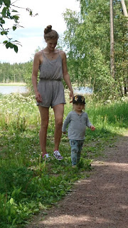 Leo on päässyt nauttimaan mm. kummitätinsä seurasta, vaikka välillä kummitäti on ollut kovinkin pelottava. Kummitädin kanssa on ollut parhautta juosta pitkin rantaa, tutkia kiviä, katsoa telkkarista hauvaa ja puhelimelta piipaa-piipaa-autoja.