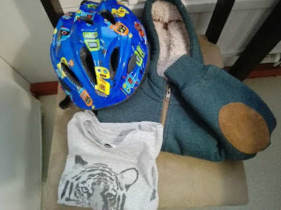 Edellisellä kerralla Dinosta mukaan tarttui pyöräilykypärä, joka on mahdollistanut meidän potkupyörän käyttöön ottamisen vihdoin. Sen lisäksi tiikeri t-paita ja paksu huppari olivat -50%, jonka takia hinta oli kohdillaan ja ne kotiutuivat meille 🙂 Meillä oli myös viime keväänä tuollainen samantyylinen paksumpi huppari ja silloin se oli kovassa käytössä – niin helppoa vetäistä tuollainen päälle esim. kaupparaissulle.