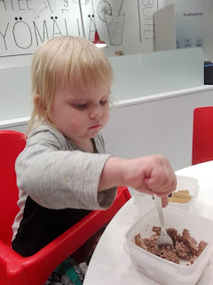 Blaa!:n vaatteista tykkäisin ihan todella paljon useammasta kuosista, mutta ne eivät vain asetu Leon ruumiinrakenteelle jotenkin. Väärä malli. Heiltä meillä on yksi pipo, mutta sekin pääsee käyttöön vasta sään kylmetessä; siihen olen kyllä hiukan rakastunut jo.