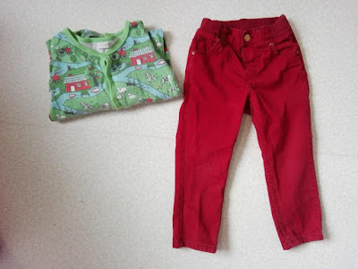 Tänään odottelin kyytiäni töistä kotiin (Leo nukkui, joten hetken jouduin odottelemaan) ja työpaikkani sijaitsi kirppitorin vieressä.. No sieltä löytyi pari vaatetta ihan super halvalla, kun oli -50%! Yökkäri ei ole välttämättä minun tyyliseni, mutta yökkäriä kun ei kamalasti joudu katselemaan ja melkein saa olla tyytyväisempi mitä vähemmän sitä joutuu katselee (yleensä yö on parempi, jos ei joudu useasti yökkäriä näkemään!). Ja ei tuo yökkäri nyt niin kamala, kun sitä kotonakin vielä katseli. Ja sitten löytyi tuommoset punaiset housut. En tiedä, onko punainen meidän värimme, mutta.. Miksei? Ne olivat sen verran halvat, että uskalluin ostamaan, että josko osaisimme vaikka käyttääkin 🙂