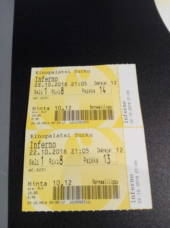 Parisuhdeaikaa, niin siis mitä aikaa oli? No, parisuhdeaikaa tietenkin! Kävimme eilen katsomassa miehen kanssa kahdestaan Inferno-elokuvan, kun Leo jäi kotiin nukkumaan kummisedän ollessa lapsenvahtina. Suuri kiitos kummille, kun jaksoi ajella luoksemme ja tulla lapsenvahdiksi! 🙂 Oli ihanaa päästä kahdestaan miehen kanssa tekemään jotain, istuskella elokuva-teatterissa käsi kädessä ja syödä yhdessä popcorneja. Näitä mahdollisuuksia on kovin harvoin tässä kohti elämää, mutta.. Nautitaan näistä vähistä kerroista <3