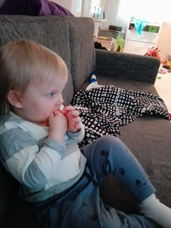 Aamulla herätessä arvoin vielä suuresti, että onko tuo lapsi sairas vai päiväkoti-kuntoinen eli oikeasti aika terveen oloinen. Vajaa tunti heräämisen jälkeen mitattiin lämpö ja se oli 37,6 joten päätös oli helppo – jäimme kotiin. Lisäksi nenä vuosi ja yskitti, mutta ei mitenkään kovin paljoa kuitenkaan.