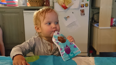 Meillä on nyt pussit kulkeneet mukana mm. Salon messuilla, Paavo Nurmi Sporttipäivässsä, uimarannalla, lääkärin vastaanotolla ja on niistä monet kerrat syöty kotosallakin välipalaa. Taapero tykkää saadessaan soseensa lusikoinnin sijaan smoothiepussista ja äiti tykkää vähäisemmästä sotkusta. Heh.