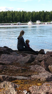 Juhannus on kulunut mukavasti mummalassa; mumman, ukin, parin tädin ja enon kera. Sää on ollut viileä, kuten Suomen juhannukseen tuntuu kuuluvan, mutta eilen näyttäytyi aurinkokin. Merenrannasta on tullut Leon suosikki-paikkoja; en tiedä onko siellä parasta ne linnut, veneet vaiko meren rauhallisuus. Vai kenties se kaikki yhdessä? Leo kuitenkin tuntuu nauttivan rannassa käymisestä ja meren ihmettelystä, joten sitä on sitten harrastettu nyt täällä ollessa 🙂 Juhannukseen kuului grillailua, mutakakkua ja höpinää. Ei kai sen tarvitse sen ihmeempää ollakaan?