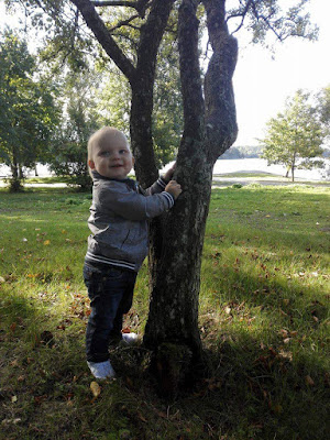 Leokin oli innoissaan, kun pääsi hypistelemään lehtiä, keinumaan, kävelemään luonnossa.. Todella vähäiset ovat tämän pojan kosketukset luontoon, koska kaikki tuppaa menemään suuhun ja suolisto ei sitä kestä. Joten saa olla koko aika vieressä ja katsoa, ettei toinen lapa suuhunsa kaikkea hiekasta tupakan tumppeihin. Mutta ihanaahan tuo pienen ihmisen ilo ja onnellisuus on tuolla ulkona! 🙂